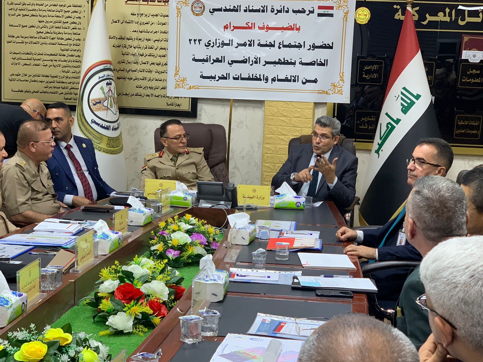 بحثت دائرة شؤون الألغام اليوم الأربعاء في مقر دائرة الأسناد الهندسي التابعة لوزارة الدفاع وبحضور الوكيل الاداري لوزارة البيئة الدكتور كامران علي حسن منجزات وتحديات لجنة الامر الوزاري 223 والمشكلة من وزارات الدفاع والنفط والبيئة والمعنية بأيجاد الحلول العاجلة لأي تعارضات لحقول الألغام التي قد تعترض أنشطة وأعمال الشركات النفطية والأستثمارية المخولة من قبل وزارة النفط