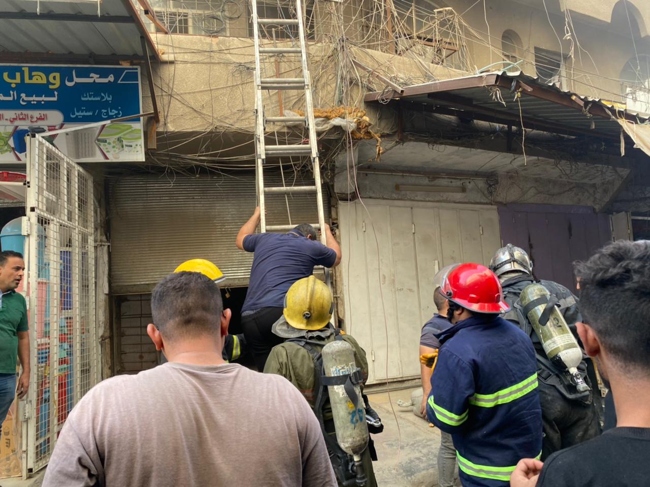 فرق الدفاع المدني تستنفر لتنقذ اشخاص محتجزين وتخمد حريق بناية تجارية في منطقة الشورجة وسط بغداد