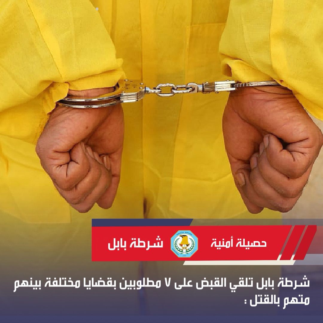وكالة الوزارة لشؤون الشرطةشرطة بابل تلقي القبض على 7 مطلوبين بقضايا مختلفة ، بينهم متهم بالقتل