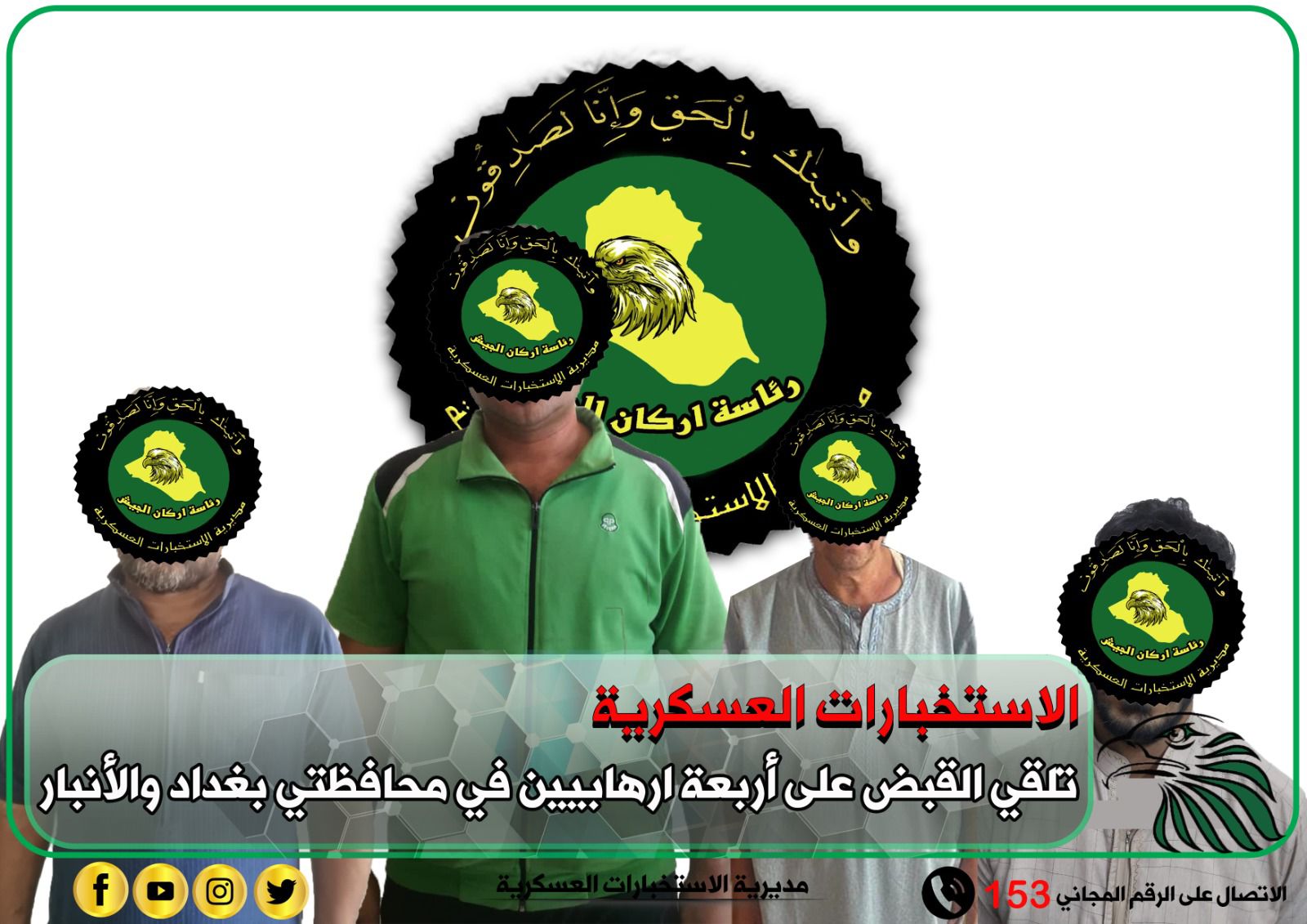 الاستخبارات العسكرية تلقي القبض على أربعة ارهابيين في محافظتي بغداد والأنبار