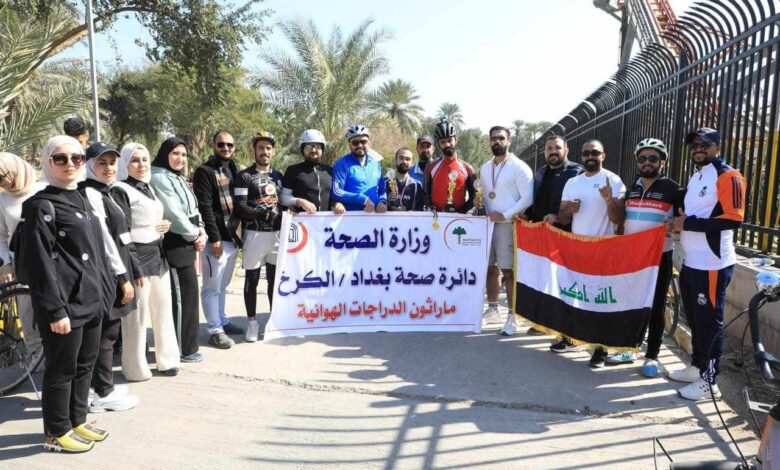 دائرة صحة بغداد الكرخ تنظم ماراثون الدراجات الهوائية للتشجيع بأهمية النشاط البدني على حدائق متنزه الزوراء