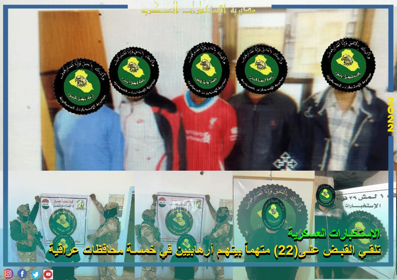 الاستخبارات العسكرية تلقي القبض على ( 22 ) متهماً بينهم أرهابيين في خمسة محافظات