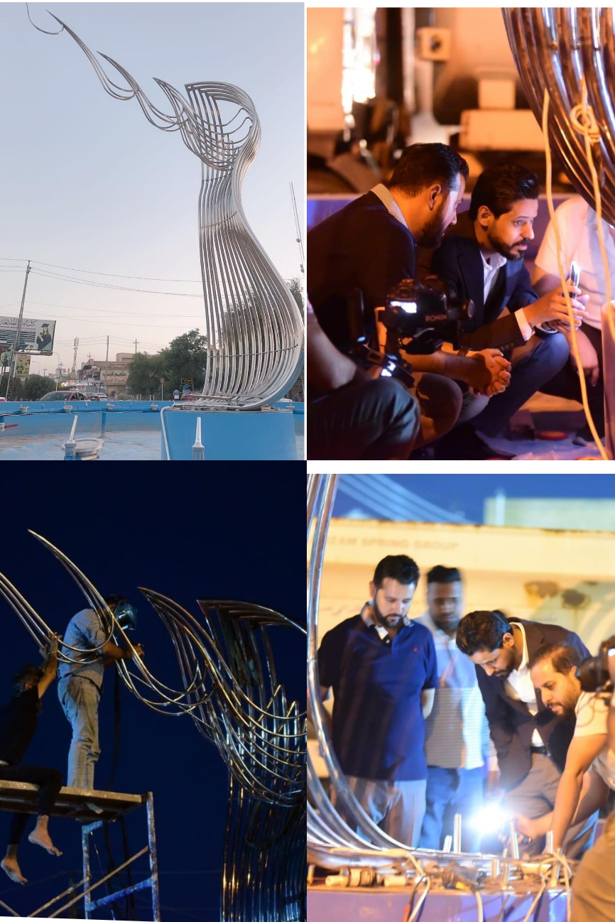 اشرف شخصيا على العمل حتى ساعات الصباح الاولى محافظ ذي قار يقف على التفاصيل الفنية الدقيقة لنصب (لفظ الجلالة) بتشكيل فني حديث ولائق وبموقع مميز وسط الناصرية