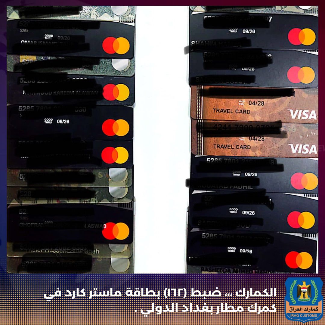 الكمارك ،،، ضبط (١٦٢) بطاقة ماستر كارد في كمرك مطار بغداد الدولي