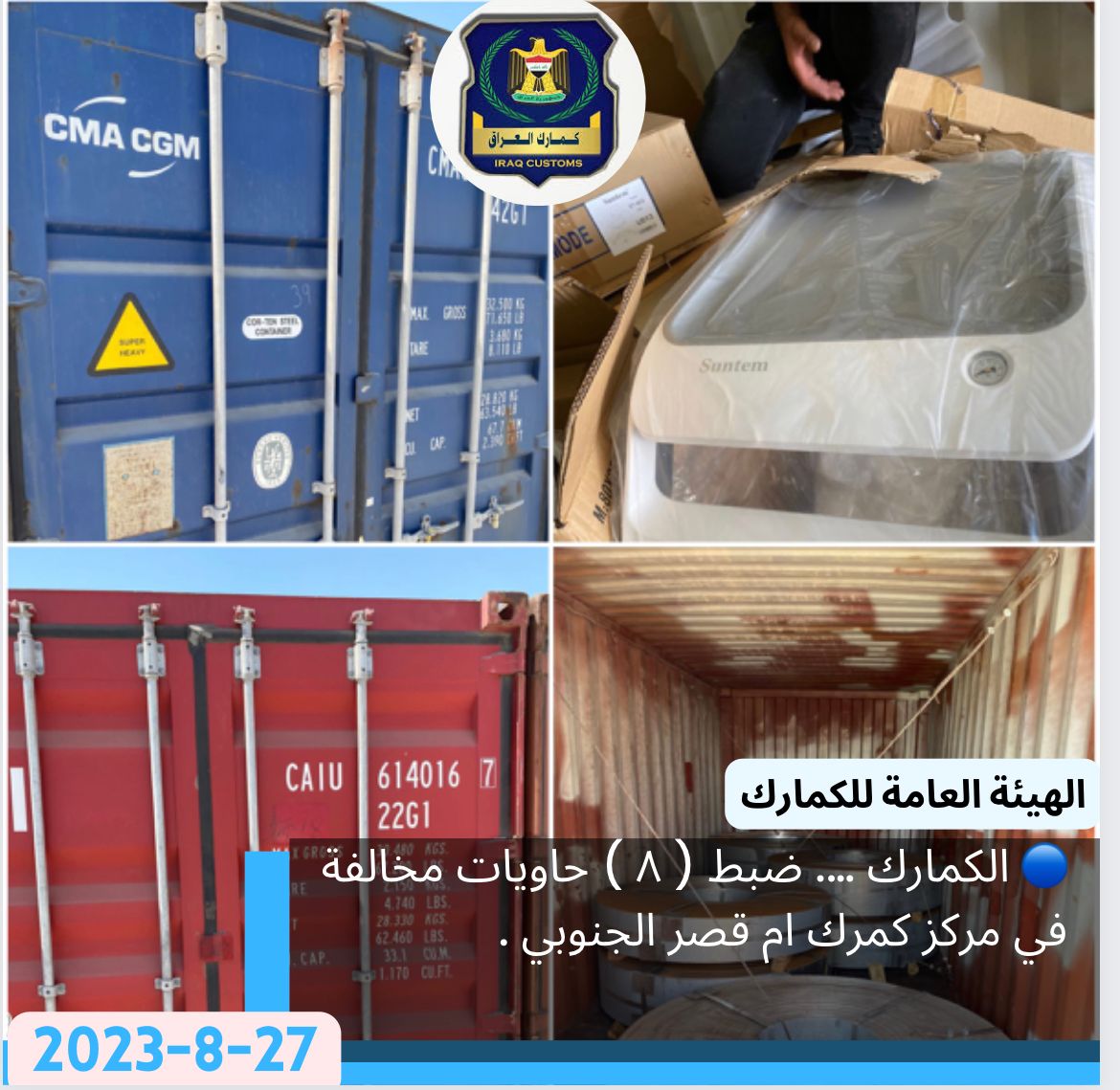 الكمارك …. ضبط ( ٨ ) حاويات مخالفة في مركز كمرك ام قصر الجنوبي