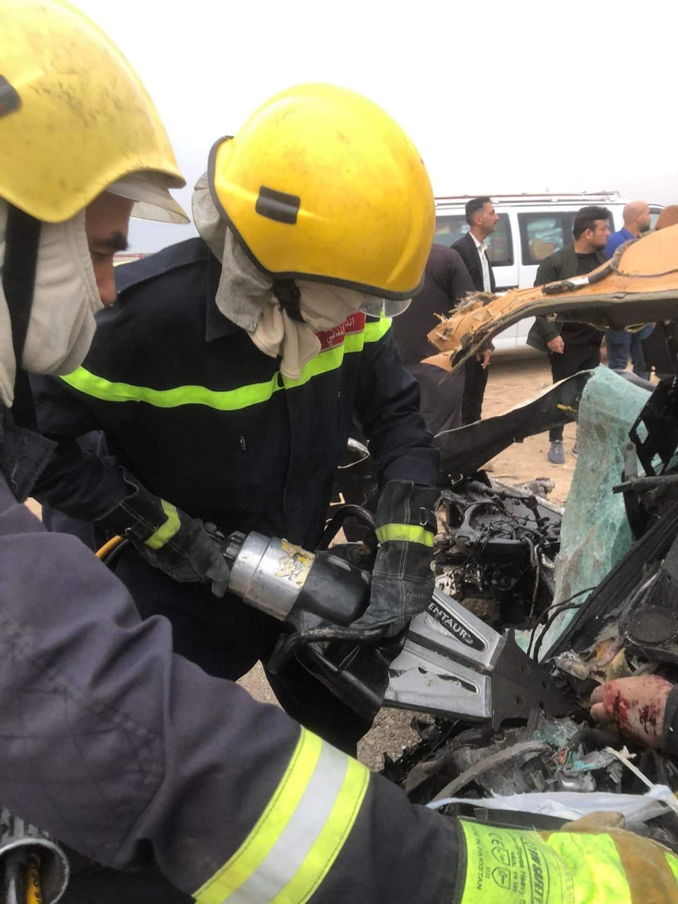 انقاذ 3 وانتشال 4 وحرز مبالغ مالية والدفاع المدني تضطر لإستخدام اجهزة الانقاذ نتيجة حادث مروري في الديوانية