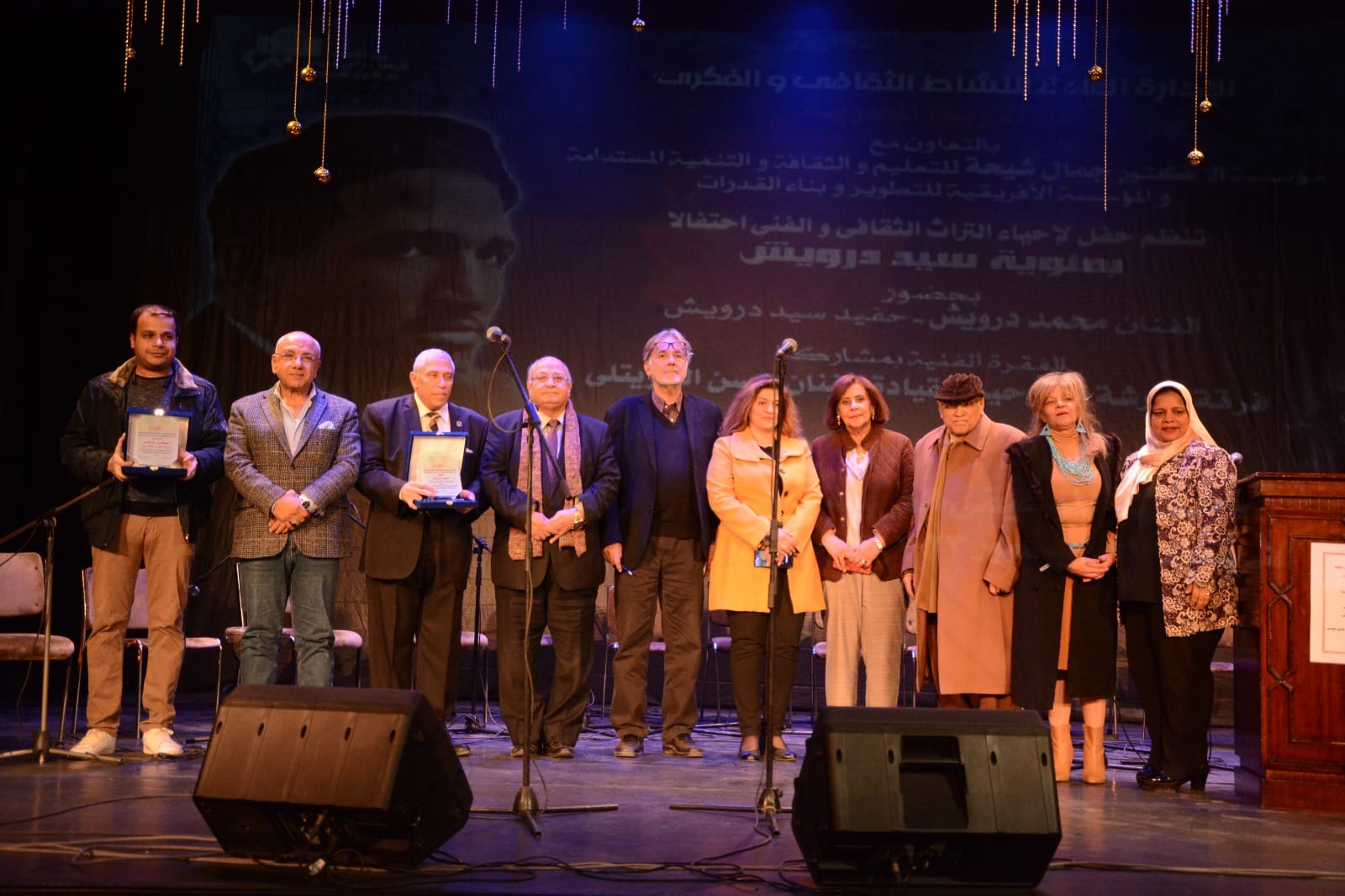 وقام بتقديم الجوائز ودرع سيد دوريش كل من الاستاذ الدكتور ” جمال شقرة” و الكاتب الروائي القدير “يوسف القعيد”و الدكتورة “أماني الطويل ” و الكاتبة الصحفية ” إيمان رسلان ” و الاستاذة ” أنتصار خليل ” المدير التنفيذي لمؤسسة الدكتور جمال شيحه، و الاستاذ ” أحمد خليل ” المسئول المالي و الإداري لمؤسسة الدكتور جمال شيحة.