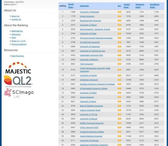 جامعة الكوفة تحتل مراتب متقدمة ضمن نتائج تصنيف Webometrics