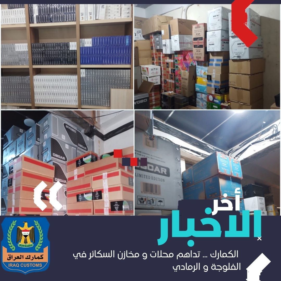 الكمارك … تداهم محلات و مخازن السكائر في الفلوجة و الرمادي