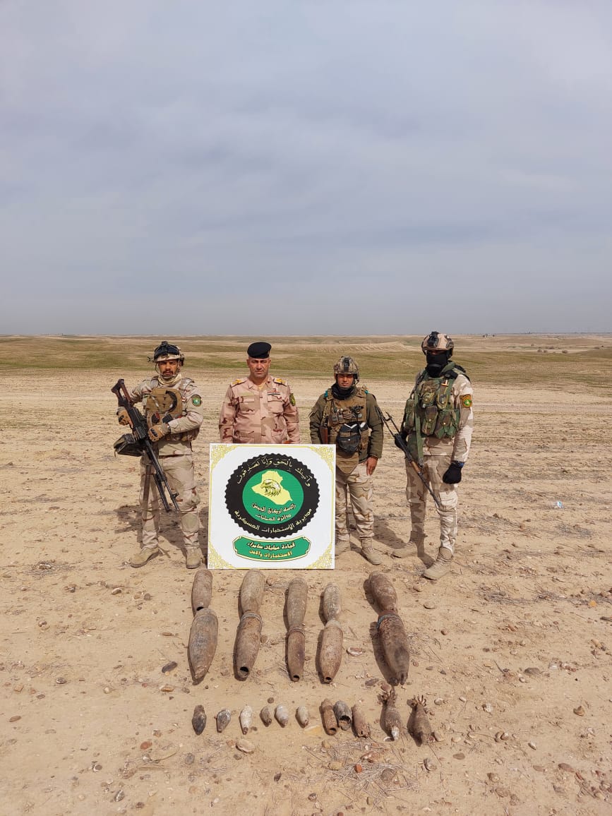 تاكيداً لمهامها في البحث والتفتيش عن مخلفات داعش الارهابي وبمعلومات دقيقة لقسم استخبارات قيادة عمليات سامراء والتي اكدت وجود مقذوفات مختلفة في جزيرة تكريت الحدود الفاصلة لمحافظة صلاح الدين ، تم على اثرها خروج مفرزة من استخبارات القسم وبالتعاون مع فصيل استطلاع القيادة اسفرت عن ضبط
