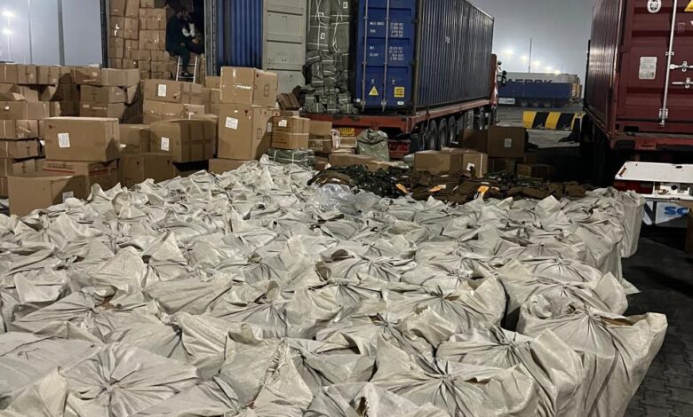 ضبط (مستلزمات عسكرية، شواصي دراجات نارية) معدة للتهريب في منفذ ميناء ام قصر الشمالي