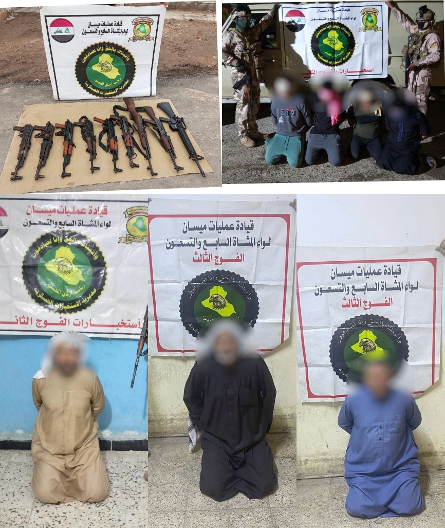 قيادة عمليات ميسان تُلقي القبض على (٧) مطلوبين ومصادرة عددً من الأسلحة المتنوعة