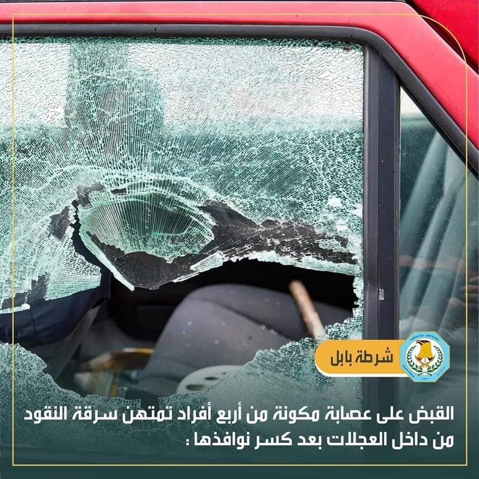 أعلنت قيادة شرطة بابل القبض على عصابة مكونة من أربعة أفراد تقوم بسرقة النقود من داخل العجلات بعد كسر نوافذها في عملية نوعية وسط مدينة الحلة.