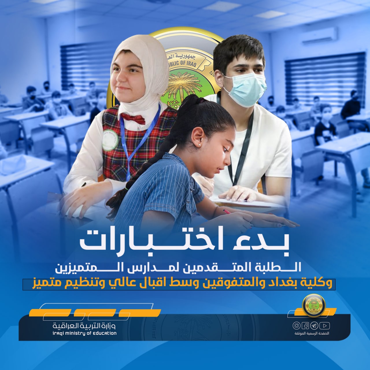 أعلنت وزارة التربية اليوم الإثنين عن بدء اختبارات المفاضلة بين الطلبة المتقدمين إلى مدارس المتميزين وكلية بغداد والمتفوقين للعام الدراسي 2022 – 2023 .