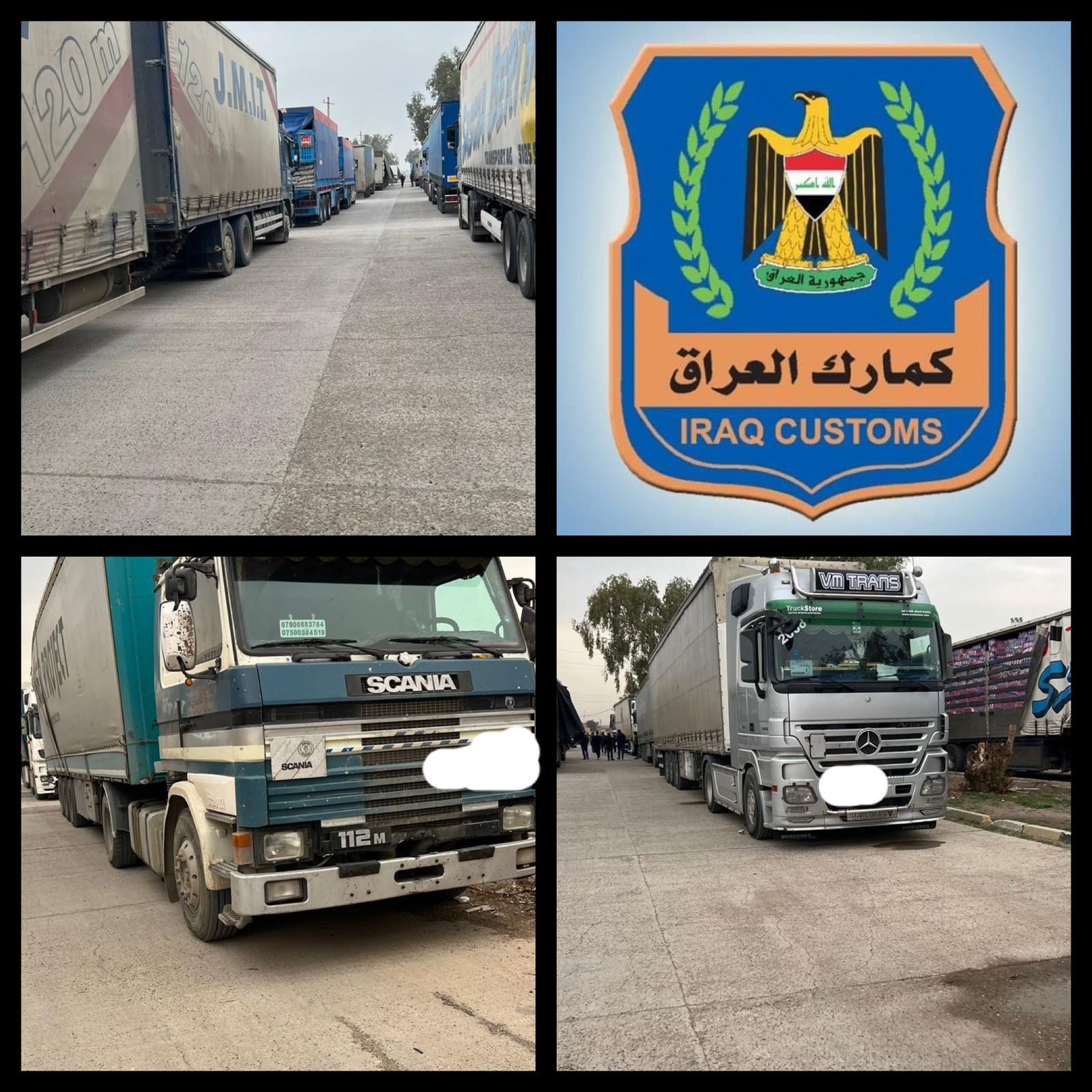 اعلنت الهيئة العامة للكمارك اليوم الاربعاء عن ضبط ( ٣٩ ) شاحنة من قبل قسم التحري و مكافحة التهريب في مديرية كمرك المنطقة الوسطى محملة (سيراميك و رفوف المنيوم و قناني زجاجية فارغ و بواري تأسيس و حفاظات ومركزات غذائيه و اثاث وحديد تسليح وانابيب بلاستك و رول نايلون و كارتون فارغ و مرمر) مخالفة للشروط و الضوابط الاستيرادية .