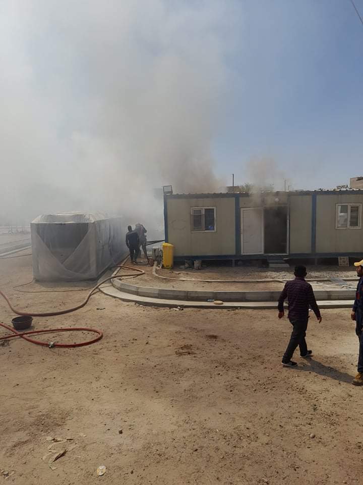الدفاع المدني يخمد حريق كرفانات داخل مستشفى الفلوجة العام