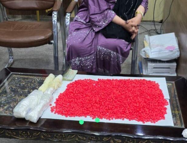 ضبط (1) كغم من مادة الكريستال وحبوب مخدرة بحوزة مسافرة عراقية