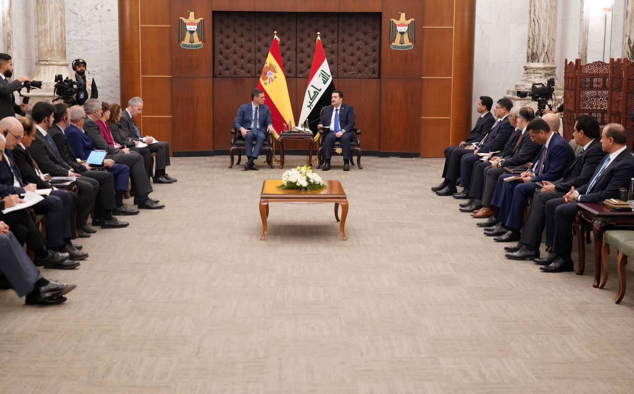 اكد رئيس الوزراء العراقي محمد السوداني عن الشكر للحضور الذي رافق الزيارة الرسمية لرئيس الوزراء الإسباني إلى بغداد، وثمنا رغبة الشركات الإسبانية المتخصصة في شتى المجالات الاقتصادية بالمشاركة في خطط التنمية وإعمار البنى التحتية في العراق.