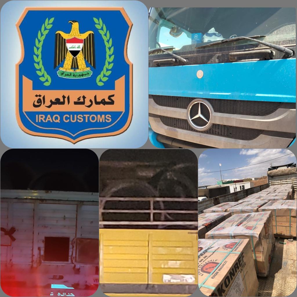 حيث اعلنت الهيئة عن قيام قسم التحري و مكافحة التهريب ( مفرزة كركوك ) في مديرية كمرك المنطقة الشمالية بضبط (٧) شاحنات محملة ( انابيب حديد و طابوق حراري ) مخالفة للضوابط و التعليمات النافذة.