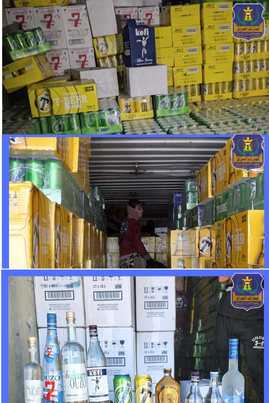 تنفيذا لتوجيهات مدير عام الهيئة العامة للكمارك المستشار حسن حمود العكيلي للمناطق و المراكز الكمركية كافة بتكثيف الجهود المبذولة من اجل غلق و تجفيف منابع التهريب .اعلنت الهيئة ، عن تمكن التحري و مكافحة التهريب في مديرية كمرك المنطقة الوسطى اليوم الاثنين ٦ تشرين الثاني ٢٠٢٣ و من خلال عملية نوعية استباقية في محافظة صلاح الدين / قضاء بيجي التي اسفرت عن ضبط شاحنتين محملة ( مشروبات كحولية ) و بعدد ( ٤٢٦٩ ) كارتون .