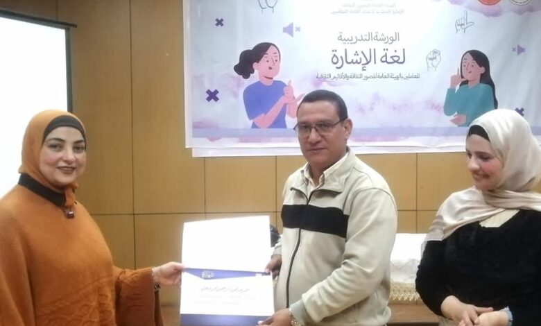 اختتمت الدكتورة منال علام رئيس الإدارة المركزية لإعداد القادة الثقافيين ثالث مجموعات المستوى الثاني من الورشة التدريبية للغة الإشارة بمصر الجديدة للعاملين بأقاليم شرق الدلتا ، والقاهرة وشمال الصعيد ، والقناة وسيناء.