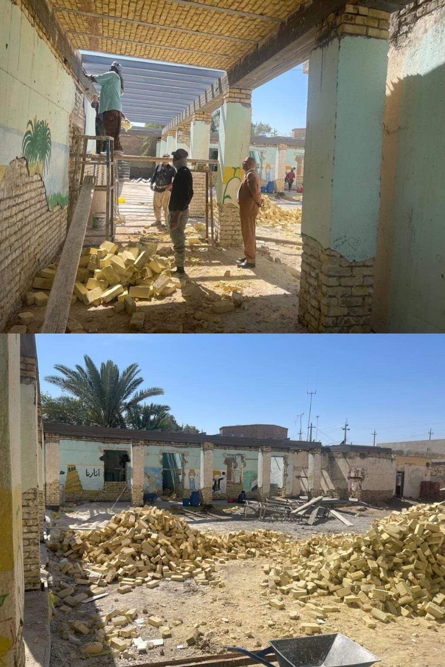 بمتابعة محافظ ذي قار ..تسارع وتيرة العمل في مشروع اعادة تأهيل المدارس بناحية العكيكة