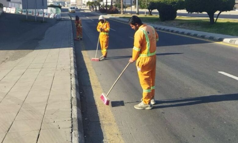 وجرى توزيع معدات النظافة والوقاية الصحية في مختلف المواقع، ومواصلة أعمال صيانة وغسيل الحاويات، ونظافة الحدائق والمنتزهات العامة والمواقع السياحية، وكنس الشوارع الرئيسية وإزالة الأتربة، مع تنفيذ برنامج التقاط المخلفات من الأحياء والشوارع العامة والساحات والميادين، وتقوم الضواغط وشاحنات نقل وتفريغ الحاويات بنقل أكثر من 2500 طن من النفايات يومياً من كافة المواقع والأحياء والأسواق إلى المدفن العام (الطمر الصحي)، ويتم تفريغ حاويات النفايات بالأحياء بشكل مستمر، وتم خلال الأيام الثلاثة الماضية نقل أكثر من 8 آلاف طن من النفايات إلى الطمر الصحي.