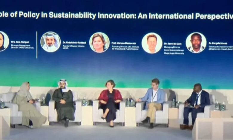 تلتها جلسة بعنوان “دور السياسات في الابتكار المستدام: منظور دولي” أدارتها أ. يارا العنقري من جامعة الملك عبدالله للعلوم والتقنية، بمشاركة الدكتور عبدالله الردادي من وزارة البيئة والمياه والزراعة، والدكتور كارجيل ماسّو من المجموعة الاستشارية للبحوث الزراعية الدولية، والدكتور يوست دي لات من جامعة واجينينجن، والبروفيسورة ماريانا مازوكاتو، من معهد الابتكار العام، جامعة كوليدج لندن.