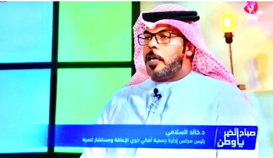 المستشار الدكتور خالد السلامي -، سفير السلام والنوايا الحسنة وسفير التنمية ورئيس مجلس إدارة جمعية أهالي ذوي الإعاقة ورئيس مجلس ذوي الهمم والإعاقة الدولي في فرسان السلام وعضو مجلس التطوع الدولي وأفضل القادة الاجتماعيين في العالم لسنة 2021 وعضو الامانه العامه للمركز الأوروبي لحقوق الإنسان والتعاون الدولي وعضو التحالف الدولي للمحامين والمستشاريين الدوليين .