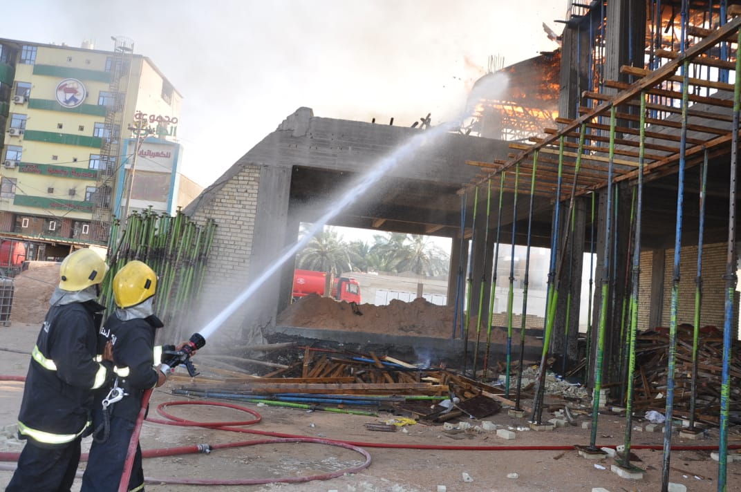 الدفاع المدني يخمد حريق قلب خشب لبناية قيد الانشاء وسط كربلاء المقدسة