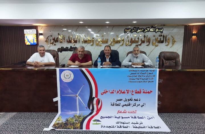 أنطلق اليوم بمجمع إعلام جنوب سيناء التابع لقطاع الاعلام الداخلى بالهيئة العامة للاستعلامات أولى فعاليات الحملة الاعلامية لدعم تحويل مصر الى مركز اقليمى للطاقة تحت شعار ” أمن الطاقة مسئولية الجميع” برعاية الكاتب الصحفى الدكتور/ ضياء رشوان رئيس الهيئة العامة للاستعلامات وبتوجيهات من الدكتور/ أحمد يحيى رئيس قطاع الاعلام الداخلى واشراف اعلامى الاستاذ/ عبدالحميد عزب مدير عام إعلام سيناء