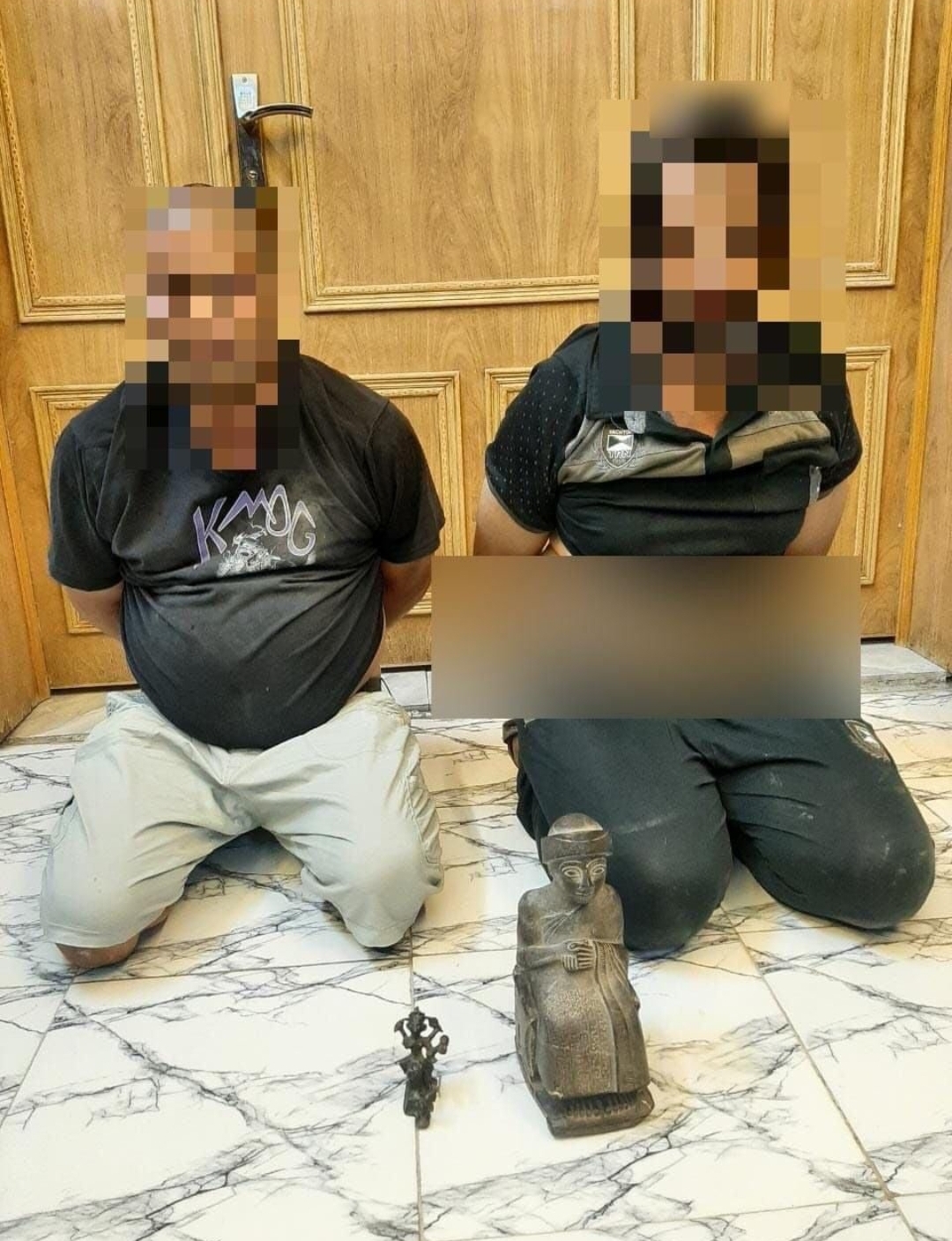 في حين تمكنت قوة من اللواء الخامس شرطة اتحادية وبالتنسيق مع وكالة الاستخبارات والتحقيقات الاتحادية من إلقاء القبض على متهمين اثنين بتهريب القطع الأثرية، والصادر بحقهم قرار قاضي من محكمة تحقيق النزاهة وغسيل الأموال والجريمة الاقتصادية.