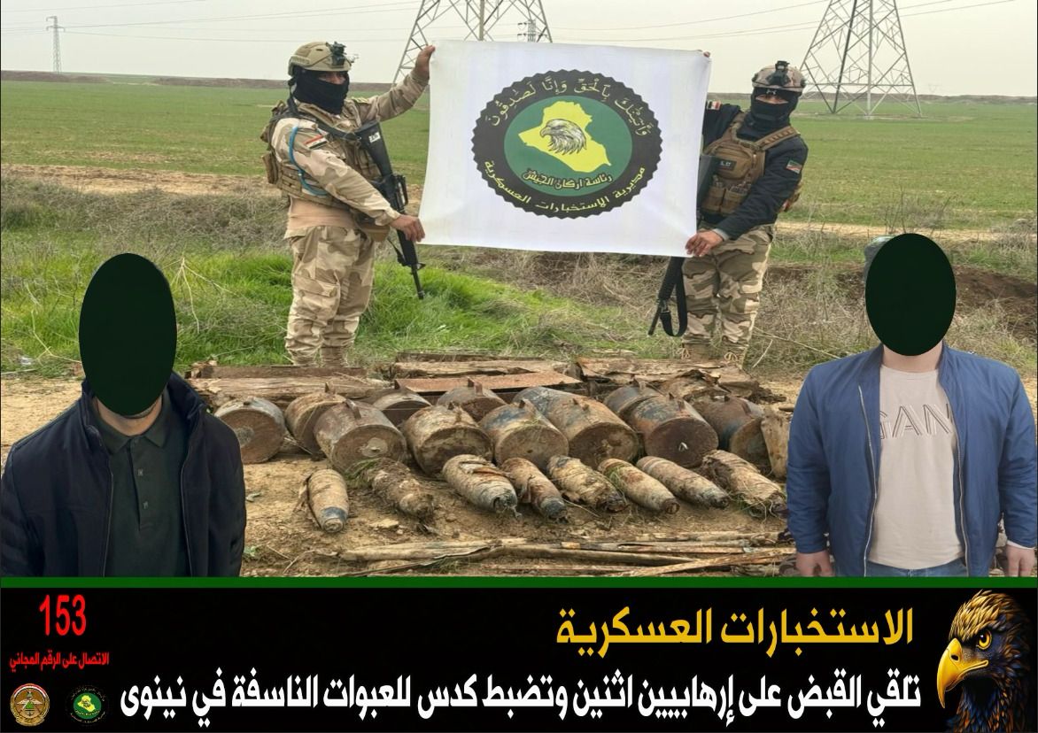 الإستخبارات العسكرية تلقي القبض على إرهابيين أثنين وتضبط كدس للعبوات الناسفة في نينوى