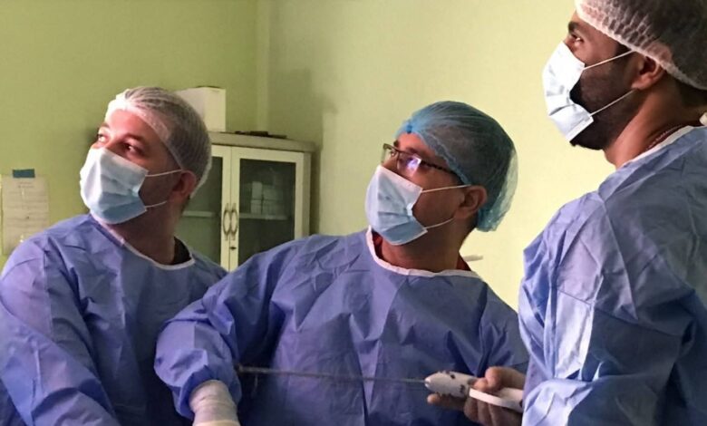 اجراء عملية قص المعدة مع استئصال المرارة باستخدام الناظور لمريضة تعاني من السمنة المفرطة في مستشفى اليرموك التعليمي