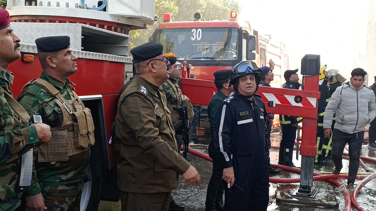 حيث استنفرت فرق الدفاع المدني في جانب بغداد الرصافة ودفعت بثقل عجلات الإطفاء التخصصية والساندة وإحاطة موقع البناية المحترقة من أربعة محاور وحققت المحور الخامس باستخدام عجلة السلم لتكافح النيران من الأعلى إلى الأسفل لتتمكن من إيقاف امتداد النيران وعزلت المخازن المجاورة لموقع الحادث بعد أن نجحت بالدخول وسط البناية وأحكمت سيطرتها الكاملة دون تسجيل إصابات بشرية.