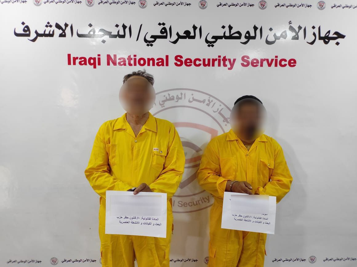 استناداً إلى أمر قبض وفق م/ (8) من قانون حظر حزب البعث والكيانات والأحزاب والأنشطة العنصرية والإرهابية والتكفيرية.. الأمن الوطني يلقي القبض على (2) من المتهمين في النجف الأشرف