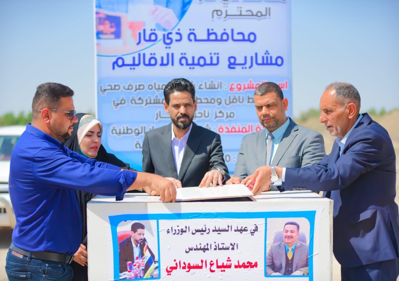 وضع محافظ ذي قار الدكتور المهندس محمد هادي الغزي ، حجر الاساس لمشروعين خدميين في مركز ناحية الطار.