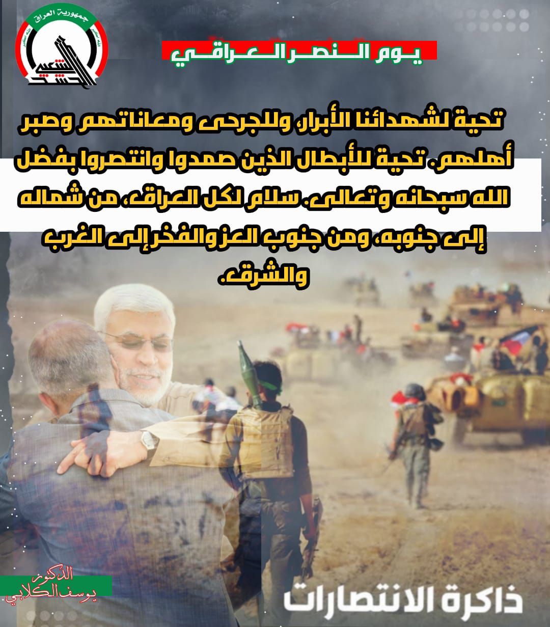 تحية لشهدائنا الأبرار، وللجرحى ومعاناتهم وصبر أهلهم. تحية للأبطال الذين صمدوا وانتصوا بفضل الله سبحانه وتعالى. سلام لكل العراق، من شماله إلى جنوبه، ومن جنوب العز والفخر إلى الغرب والشرق.