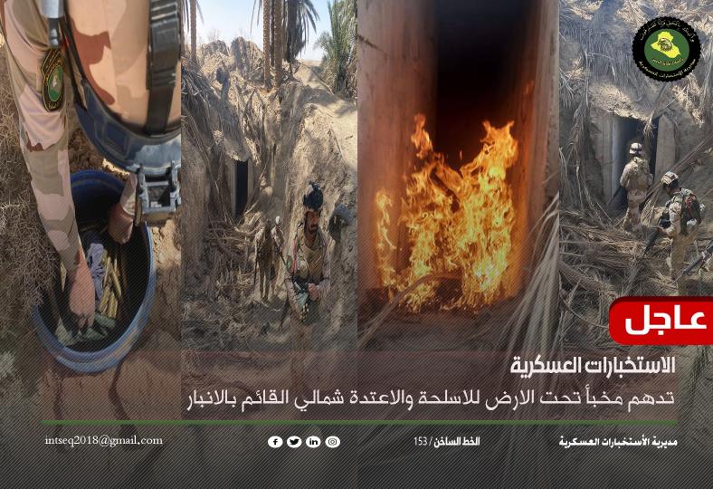 الاستخبارات العسكرية تلقي القبض على اربعة إرهابيين وتدهم مخبأ تحت الارض يضم اسلحة واعتدة في سامراء والانبار