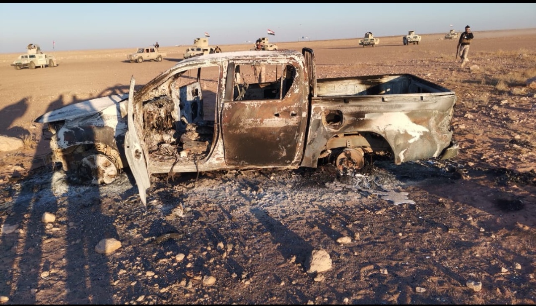الاستخبارات العسكرية وقوة برية تدمر عجلة لداعش الارهابي في صحراء الرطبة بالانبار