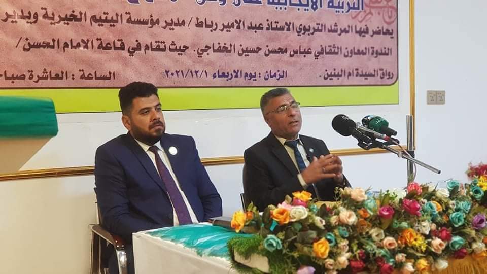 وحاضر فيها المشرف التربوي عبد الامير رباط واوضح رباط ان على الاباء الاهتمام بابنائهم وتربيتهم بما يليق بسمعتهم واعدادهم لتحمل المسؤولية لانهم جيل المستقبل وبناء شخصيتهم وتم ادارة الندوه من قبل المعاون الثقافي عباس محسن الخفاجي .