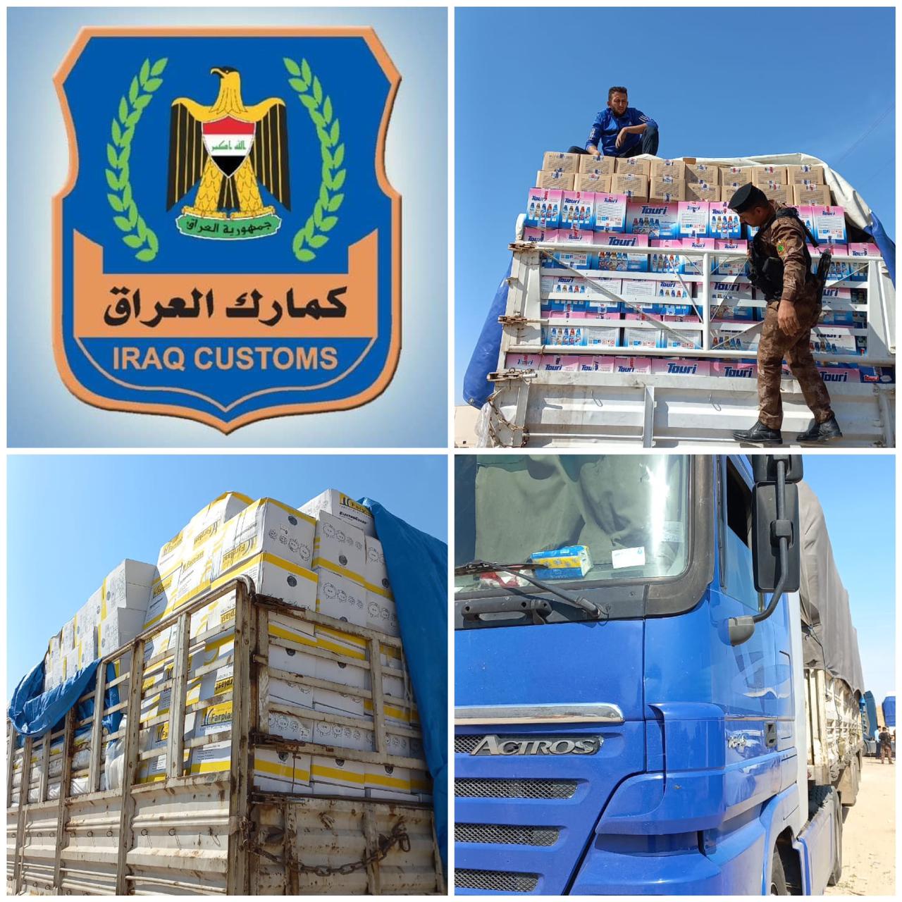بمتابعة مباشرة من قبل مدير عام الهيئة العامة للكمارك السيد حسن حمود العكيلي ، قسم التحري و مكافحة التهريب في مديرية كمرك المنطقة الغربية يضبط اربعة شاحنات اليوم الخميس الموافق ٢٣ اذار ٢٠٢٣ مخالفة للشروط و الضوابط الاستيرادية النافذة.