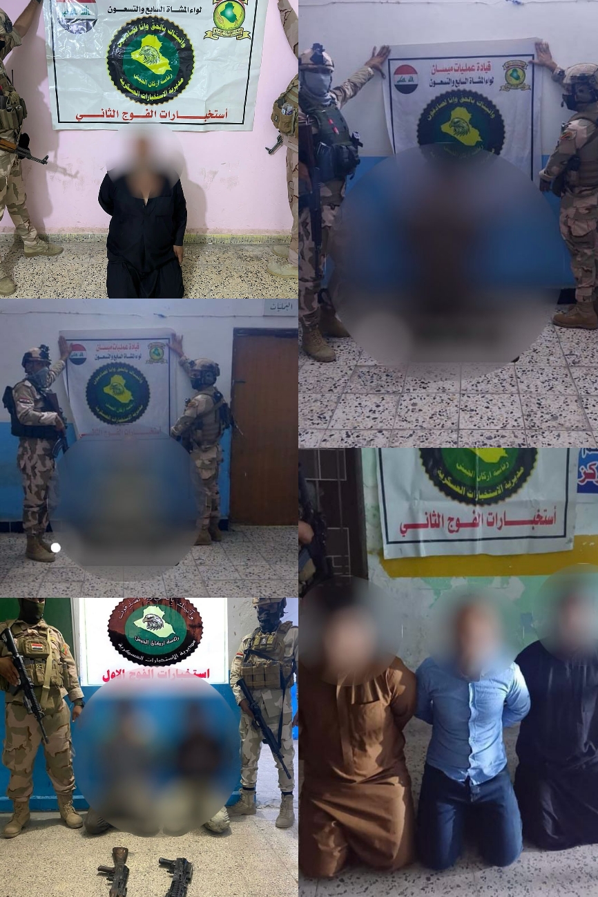 تنفيذاً لتوجيهات قائد عمليات ميسان الفريق الركن محمد جاسم الزبيدي ، في القضاء عل المظاهر المسلحة والعمل على إنهاء ظاهرة النزاعات العشائرية ، تمكنت قطعاتنا من الفوج الاول والثاني للّواء المشاة السابع والتسعين التابع لقيادة العمليات وبالاشتراك مع مركز شرطة الميمونة ومركز شرطة الزهراء وفوج طوارئ ميسان ، من القبض على ( سبعة ) متهمين من مثيري النزاعات العشائرية ومصادرة اسلحتهم في ناحية المشرح وقضاء المجر الكبير.