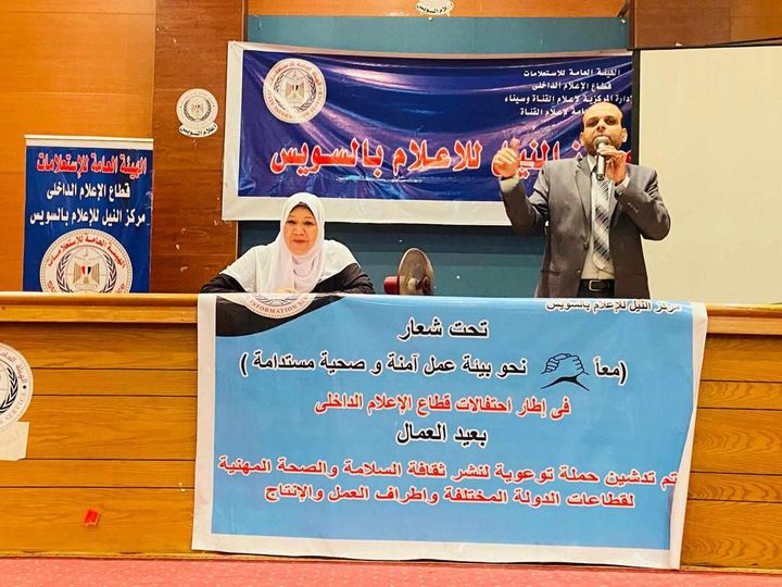 شهدت محافظة السويس لقاءا اعلاميا حول إدارة الضغوط النفسية وأثرها فى أحداث الكوارث والإصابات بالعمل ضمن حملة معا نحو بيئة عمل امنه وصحية مستدامة استمرار حملة معا نحو بيئة عمل امنه وصحية مستدامة التى أطلقتها الهيئه العامة للاستعلامات باشراف الدكتور أحمد يحيى رئيس قطاع الإعلام الداخلى وتوجيهات الدكتور ضياء رشوان رئيس الهيئه العامة للاستعلامات