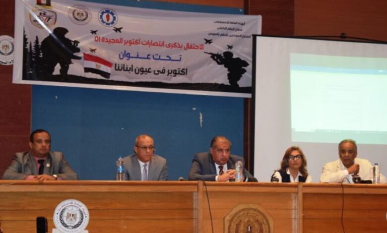 أقام “مجمع إعلام السويس” ندوة بعنوان الشخصية المصرية مفتاح النصر تنفيذا لتوجيهات القيادة التنفيذية بمحافظة السويس وفي إطار ذكري مرور ٥١ عاماً على انتصارات 24 أكتوبر ١٩٧٣ حضر اللواء أحمد الاسكندراني السكرتير العام لمحافظة السويس، صالون الشخصية المصرية بالسويس، بالتعاون مع المؤسسة العربية للإعلام والثقافة، بعنوان الشخصية المصرية مفتاح النصر ” ٦ أكتوبر _ ملحمة شعب” بحضور ممثلي المؤسسة العربية للإعلام والثقافة وعدد من القيادات التنفيذية والشعبية و طلاب وطالبات المدارس و الجامعة.
