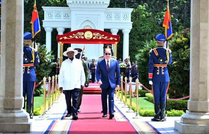 استقبل السيد الرئيس عبد الفتاح السيسي اليوم، بقصر الاتحادية، رئيس جمهورية أوغندا السيد/ يويري كاجوتا موسيفيني، حيث عُقدت مراسم الاستقبال الرسمية، وتم عزف السلام الوطني لكل من جمهورية مصر العربية وجمهورية أوغندا.