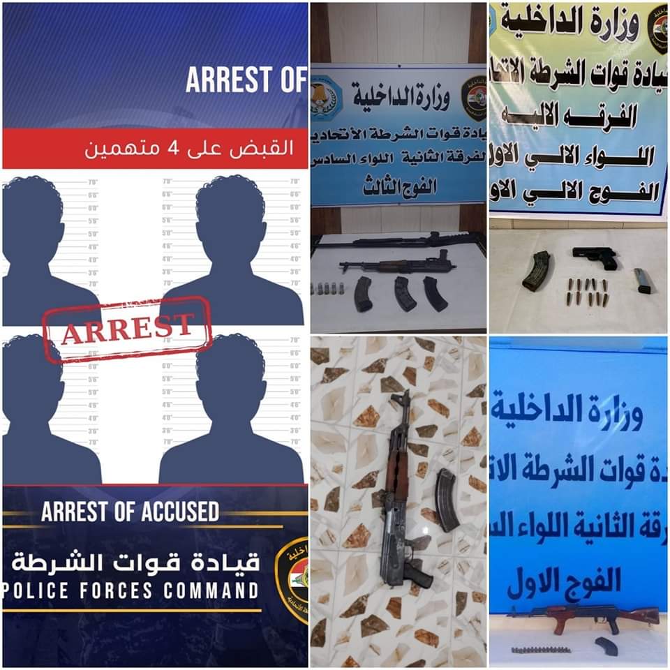 أسفر الجهد الأمني لقطعات الفرقة الآلية شرطة اتحادية وبإسناد الجهد الاستخباري والقطعات الملحقة عن إلقاء القبض على ( 4) متهمين بمواد قانونية ( تهديد ، تنفيذ ) في محافظة بابل