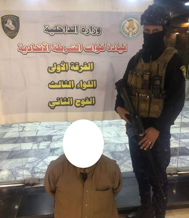 وفق معلومات استخبارية . تمكنت مفارز الفرقة الأولى شرطة اتحادية من إلقاء القبض على أحد المتهمين المطلوبين للقضاء وفق أحكام المادة (٤/إرهاب ) في منطقة البتاويين وسط العاصمة بغداد ، تم إحالة المتهم اصوليا إلى الجهات المختصة .