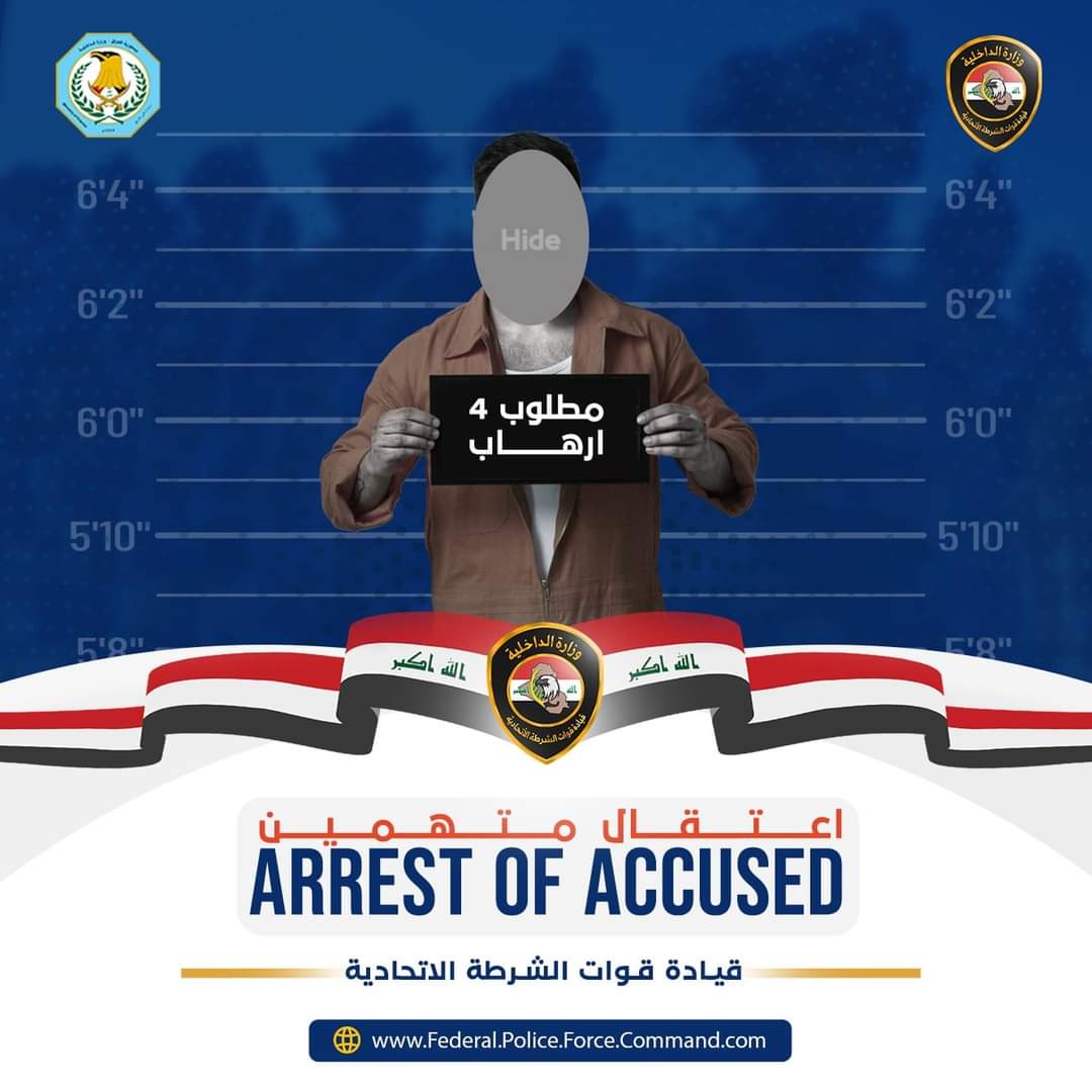 ضمن سلسلة العمليات الأمنية الناجحة التي تنفذها قوات الشرطة الاتحادية في متابعة المطلوبين من الإرهابيين وتسليمهم للقضاء لينالوا جزائهم العادل ، تمكنت قطعات الفرقة الثالثة ووفقا لمعلومات استخبارية دقيقة رصدت تواجد 2 من المطلوبين وفق المادة (٤/إرهاب) ضمن قاطع المسؤولية في محافظة كركوك تم القبض عليهما وتسليمهما اصوليا الى الجهات المختصة لإكمال الإجراءات التحقيقية والقانونية اللازمة بحقهما.