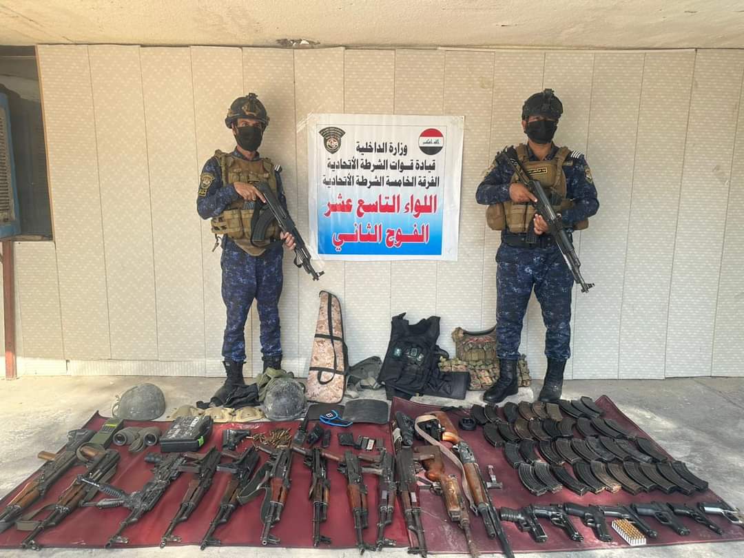 ضمن الجهود الأمنية المستمرة لقطعات الشرطة الاتحادية والرامية إلى حصر السلاح بيد الدولة لضمان أمن وسلامة المواطنين ، نَفّذت مفارز اللواء 19 بالاشتراك مع الجهات الأمنية العاملة ضمن قاطع المسؤولية عمليات تفتيش عن السلاح غير المرخص في منطقة حي الجزائر شرق العاصمة بغداد اسفرت عن ضبط ( 11 بندقية مختلفة الأنواع ، 5 مسدسات ، عتاد خفيف 756 اطلاقة ، حربتين عسكرية ، 26 مخزن مسدس ،جعبة بندقية ، مشلح بندقية ، علبة مسدس ، جهاز ايكوم ، جهاز هارس بلاستك ، 2 صفائح درع ، هراوة ، اخمص M4 ) تم التعامل مع المواد المضبوطة اصولياً من قبل القوة المنفذة للواجب .